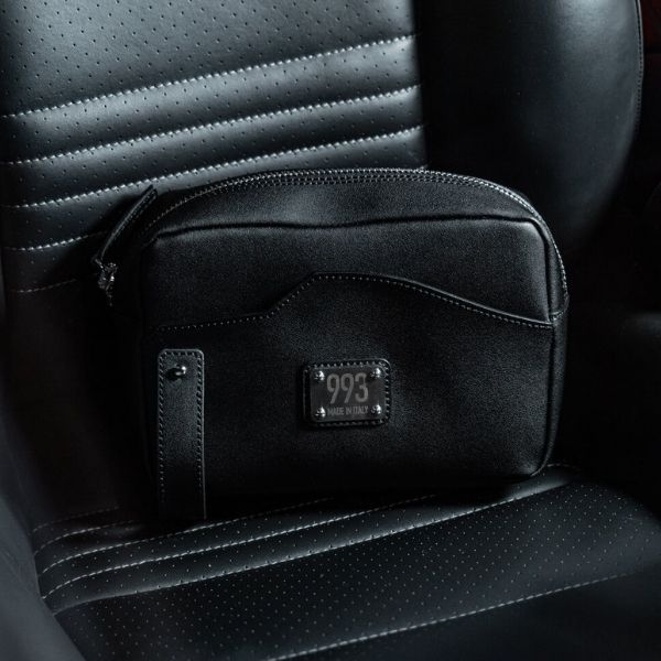 eā dotato di una tasca esterna con calamita a scomparsa, caratterizzata da una linea che ricorda la siluette di un auto sportiva.